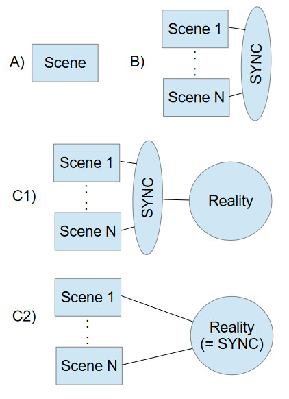 C2) MR multiuser scene, implicitly SYNC’d (via reality)