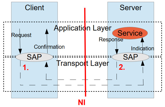 I.e. this developer needs only to know, how to call the SAP with a “Request” primitive, and how to handle the “Confirmation” primitive that is returned by the SAP.